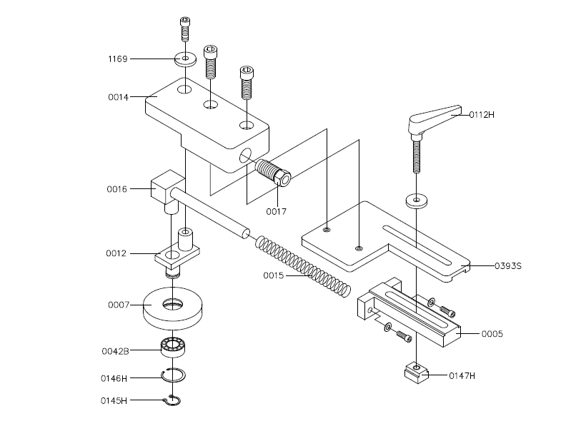 This casting (0005) bolts to the machine frame and carries the side-pressure mechanism that holds boards tight to the fence. Replace the base if the original is cracked, worn, or out of alignment. Item Value Part number 0005 Component Side-pressure base casting Dimensions 105 mm (W) × 215 mm (L) × 46 mm (H) Material […]