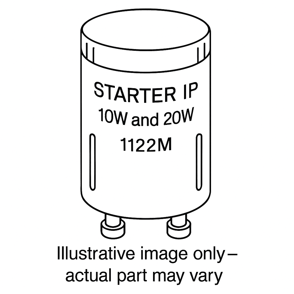 Key points Dual‐rating starter for 10W and 20W applications Part number: 1122M Supports consistent motor starting under varying loads Specifications Specification Detail Part Number 1122M Ratings 10W and 20W Component Starter IP